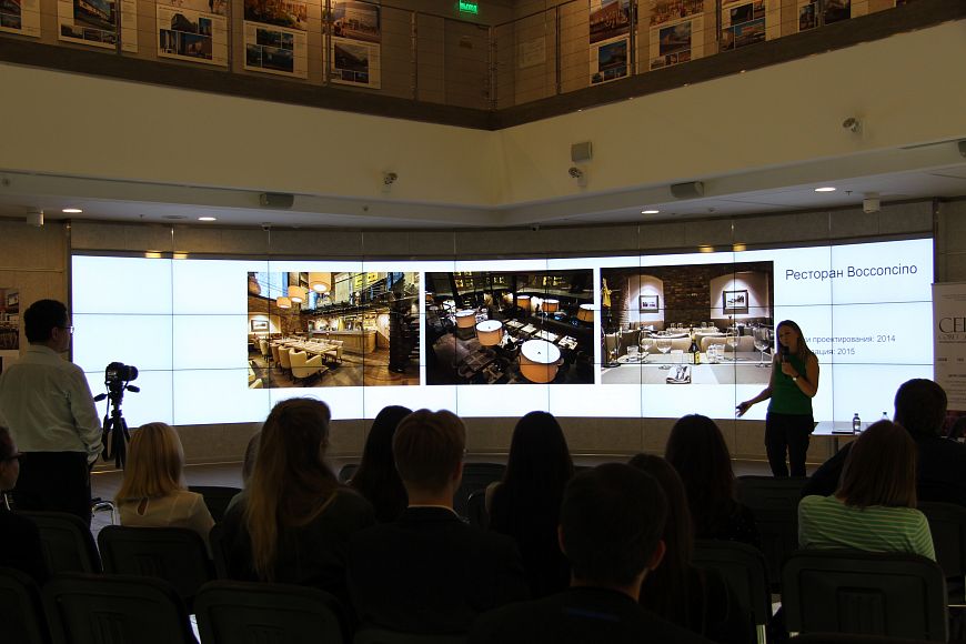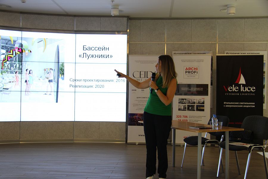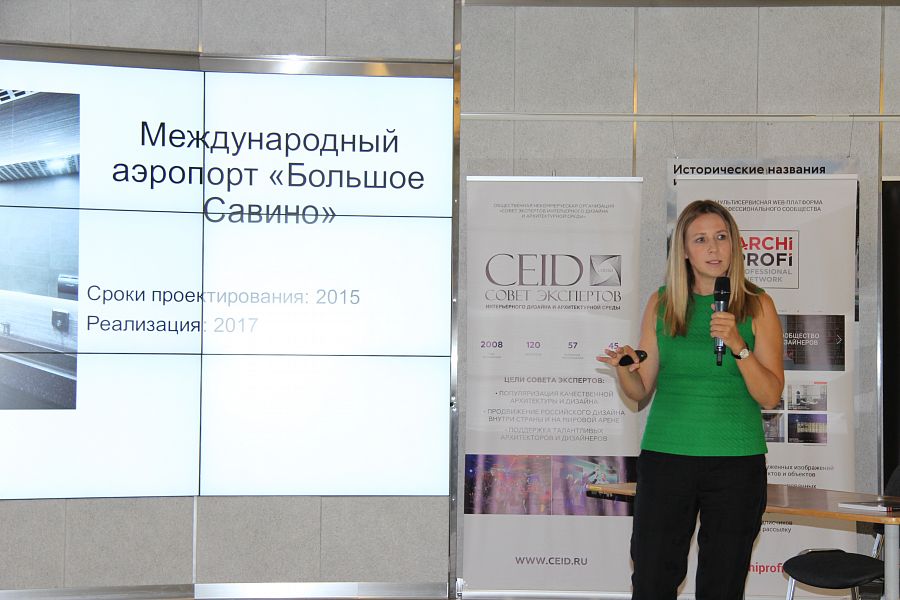 Был затронут и психологический аспект дизайна внутренних пространств. Участники мастер-класса узнали много интересной и полезной информации.Например, о том, почему зоны регистрации в аэропортах, являющиеся по сути «переходными мостиками» между городом и транспортным хабом, должны быть светлыми, просторными, легко читаемыми; а зоны вылета и прилета наоборот - небольшими, затемненными, сомасштабными человеку.Или о том, как навигация и флуоресцентная краска помогает ориентироваться в раздевалках фитнес-центра в случае отключения электроэнергии или задымления. Также Юлия рассказала об опыте применения антивандальных, негорючих, нескользких материалов.