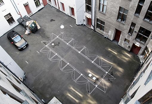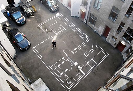 Чтобы лучше прочувствовать новый проект еще на стадии разработки, архитекторы Vardehaugen (Норвегия) предложили делать рисунки в натуральную величину. Схематичные изображения и планы время от времени появляются на асфальте внутреннего двора офиса компании. Предполагается, что подобный подход поднимет визуализацию на совершенно новый уровень.