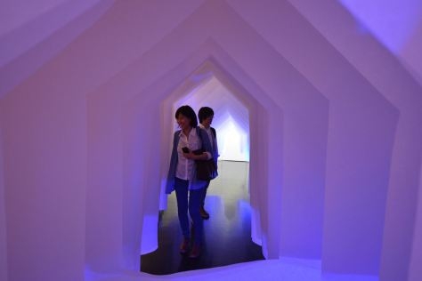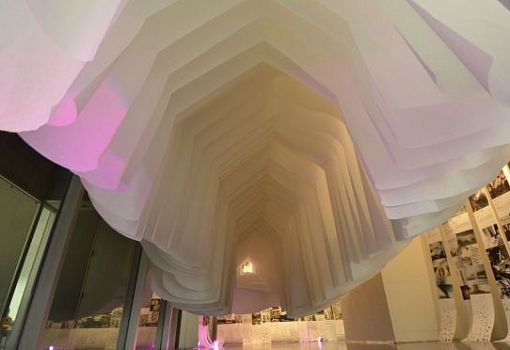 Инсталляция бюро Horiuchi Architecture, созданная из подвешенных в воздухе легких отрезов белоснежной бумаги, названа Fusionner 3.0. Объект искусственно ограничивает пространство, причем у проходящего сквозь этот своеобразный туннель человека создается иллюзия сродни той, что наблюдала Алиса в Стране чудес. Вход довольно просторный, однако пространство постепенно сужается и «перетекает» в маленькое окошко, которое, кажется, уводит в бесконечность.
