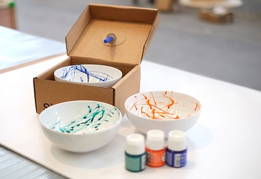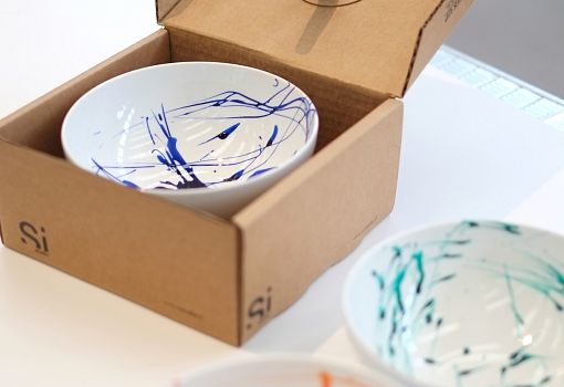 Молодые дизайнеры из чилийской студии Si Studio придумали для одного из  своих проектов совершенно неожиданного «соавтора» — им стал процесс транспортировки изделия к потребителю. Керамическая миска Pendulum Painting Bowl отправляется в упаковочную коробку, имея абсолютно чистую белую поверхность, однако по прибытии в конечную точку, она оказывается разукрашенной ярким цветным беспорядочным узором. Секрет следующий: с внутренней стороны крышки коробки помещается ручка, заправленная так называемыми «керамическими чернилами». Ручка устанавливается вертикально и закрепляется таким образом, чтобы у нее была возможность совершать маятниковые движения. Во время транспортировки ручка начинает двигаться и случайным образом наносит чернила на поверхность изделия. На выбор предлагаются чернила шести цветов,  финальный результат – непредсказуем и гарантированно уникален.