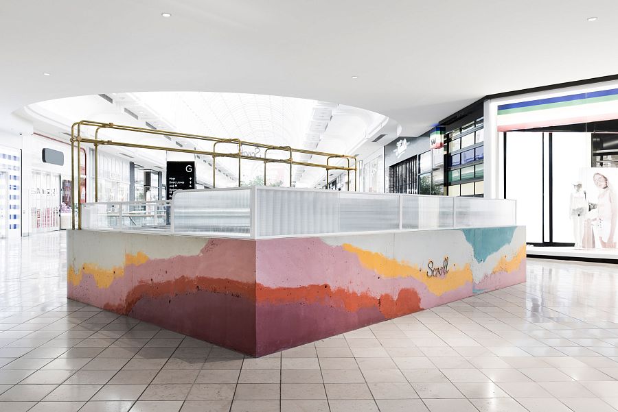«Монолитный фасад торговой точки выделяется среди других объектов торгового центра. Средствами дизайна нам удалось сосредоточить внимание покупателей как на самом продукте, так и на производственном процессе, в основе которого перемешивание слоев фруктов, ягод, орехов и ароматических добавок», рассказывают авторы этого небольшого проекта.