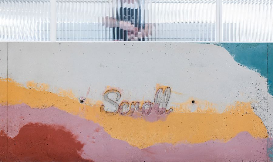 В основе концепции массивной стойки лежит образ емкости с несколькими слоями мороженого и разнообразных добавок. Технически замысел был реализован при помощи техники многослойной заливки тонированного бетона. Логотип магазина мороженого был закреплен на каркасе из медных трубок, символизирующих систему охлаждения в автоматах по производству популярного ледяного лакомства.