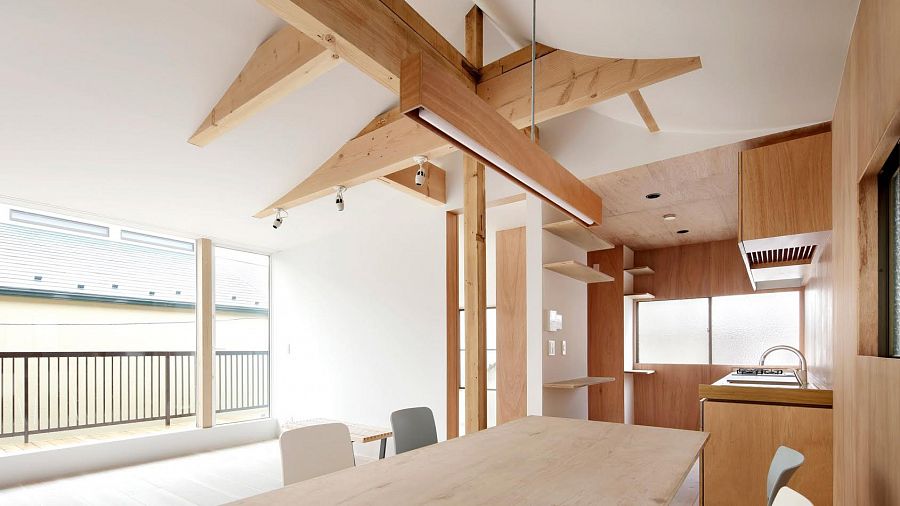 Архитекторы студии Tomomi Kito Architect & Associates осуществили реновацию двухэтажного деревянного дома в Токио, построенного в 70-х годах прошлого столетия, и превратили интерьер в открытое интересное пространство.