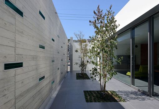Оригинальный подход к охране частной жизни продемонстрировал архитектор Масахико Савамура (Masahiko Sawamura), реализовав проект Kaleidoscope Ⅴв Японии. Дом выделяется монолитной стеной, которая ограничивает внутренний двор. Непрерывность этого элемента подчеркнута интегрированными источниками света в форме вытянутых окошек. Возникает ощущение пространственной связи с внешним миром. Строгая минималистская стилистика также обыграна в интерьере; она слегка смягчена присутствием растительности.