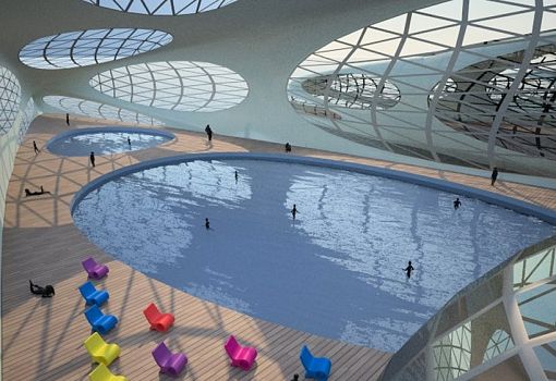 Концептуальный проект архитектора Джанлуки Сантосуоссо (Gianluca Santosuosso) исследует идею самодостаточного отеля с возможностью адаптации к любым погодным условиям. В основе структуры MORPHotel – подобие позвоночника живого существа. В целом отель будет представлять собой огромные плавающие капсулы разных размеров, нанизанные на одну подвижную ось длиной более километра. Как предполагается, отель будет дрейфовать по воле океанских и морских течений, приплывая то в один, то в другой город. Понятно, что скорость передвижения плавучего отеля будет куда меньшей, чем скорость судов, однако его идея вовсе не в быстроте, а в непрерывном путешествии. Планируется, что MORPHotel будет создан с использованием современных устойчивых технологий: интегрированных солнечных панелей, системы сбора дождевой воды, плавучих теплиц и так далее.