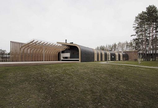 Архитекторы бюро Audrius Ambrasas Architects создали Villa G – особняк площадью в 520 кв.м. Основным требованием при проектировании было слияние сооружения с окружающим ландшафтом. Для того чтобы выполнить непростое требование, архитекторы максимально «прижали» дом к земле и растянули его в форме двух бумерангов, соединенных переходным элементом. Почти все плоскости виллы скруглены и выполнены из естественных материалов, что позволило в итоге перенести акцент с сооружения на окружающие красоты.