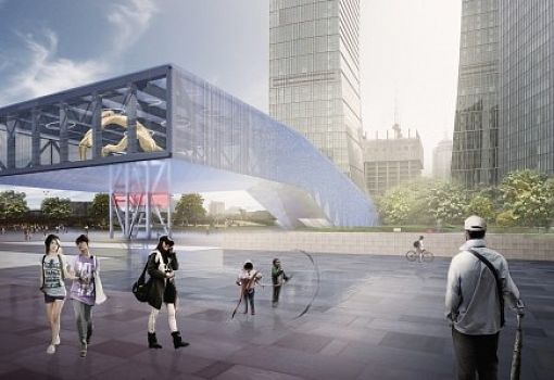 На территории бывшей шанхайской верфи планируется построить выставочный центр площадью 1500 кв.м. Конкурс на его проектирование выиграло бюро OMA. На одной из самых живописных береговых линий появится сооружение, состоящее из застекленных прямоугольных объемов. Часть здания будет опираться на землю, но ближе к кромке воды основной объем поднимается под небольшим углом, переходя в горизонтальную опору на стальном пилоне. Эта площадка предназначена для показов и выставок. По словам разработчиков, сооружение в 3D напоминает недостроенный корабль – дань памяти верфи.