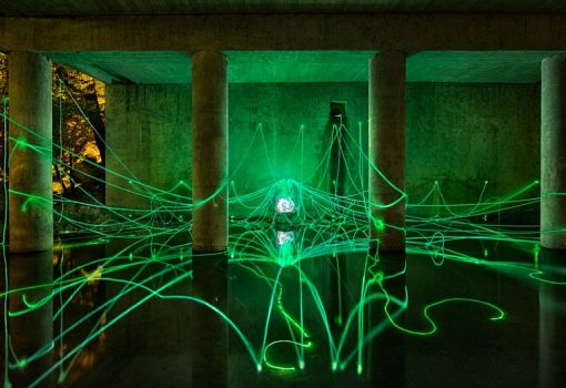 Инсталляция архитекторов Clark Richardson Architects призвана продемонстрировать спорный контраст между природой и искусственным управлением естественными процессами. Поводом стала сеть тоннелей, перенаправляющих ток дождевой воды в городе Остин (США). Инсталляция Natural Unnatural представляет собой хаотично расходящиеся нити света от единого центра под одним из мостов города.