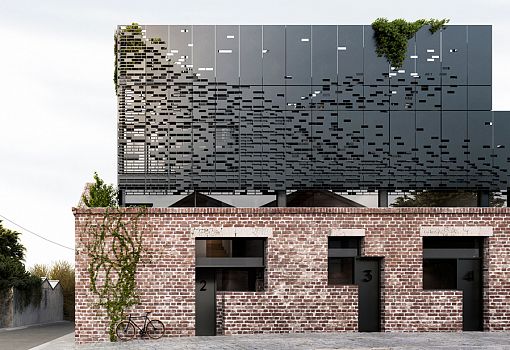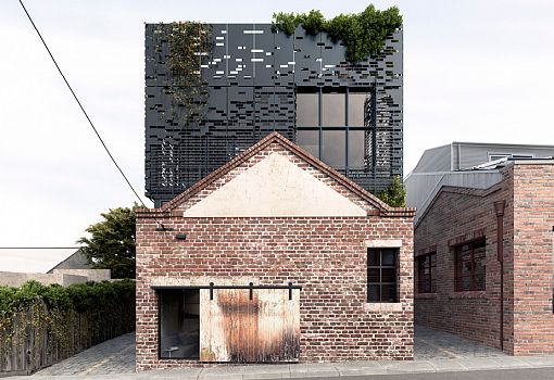 Взаимоотношения прошлого и современности по-своему интерпретировали архитекторы DKO Architecture в своем новом проекте. Старые склады мельбурнской текстильной фабрики стали жилыми домами, оформленными в современном духе. Надстройка в форме минималистского объема из металла украшена живыми растениями, но наибольшее внимание привлекает оформление ее фасадов. Они напоминают стилизованную кирпичную кладку. Прием позволяет сохранить частную жизнь в неприкосновенности, не ограничивая обзора. Площадь дома 143 кв.м.