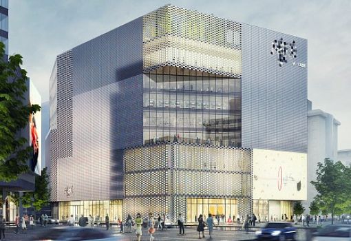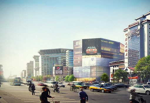 В самом центре Пекина, рядом с отелем «Хутонг» и Храмом Неба, а также железнодорожным вокзалом бюро MVRDV строит торгово-развлекательный центр «Chongwenmen M-cube» общей площадью 44.000 кв. м. Получив возможность спроектировать здание в таком «бойком» месте, архитекторы MVRDV решили создать контекстный и адаптивный дизайн, оживляющий улицу. Нижние этажи займут магазины, в то время как на верхних расположатся рестораны, бары, а также лобби, соединяющееся непосредственно с улицей с помощью внешних эскалаторов. Это позволит иметь доступ к верхним уровням в вечерние и ночные часы, когда магазины уже закрыты. Также посетители смогут попасть в здание через подземный переход прямо от станции метро. Террасы и сад на крыше обеспечат спокойные тихие места для отдыха от городского шума и суеты. Для фасада MVRDV используют сделанную на заказ перламутровую керамическую плитку, создающую впечатление постоянной визуальной анимации. Каждая плитка излучает весь спектр цветов, которые меняются в зависимости от времени суток и угла зрения. Стены здания отображают новые узоры и цвета при малейших изменениях освещения. Все это дает зданию желанный контраст по сравнению с другими объектами, отделанными одинаковыми алюминиевыми панелями.