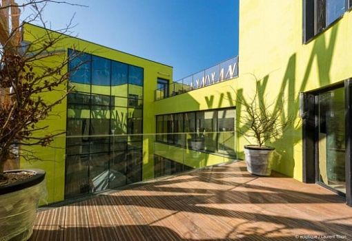 Для органичной интеграции своего проекта в живописные ландшафты Шавиля (Франция) сотрудники бюро Laraqui Bringer Architecture решили стилистически объединить экстерьер и интерьер сооружения. Их многофункциональные пространства буквально пропитаны природной тематикой: ограждение фасада выполнено из фигурных панелей, стилизованных под деревья, а в ярких внутренних пространствах растут небольшие живые деревца.