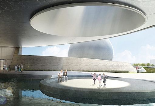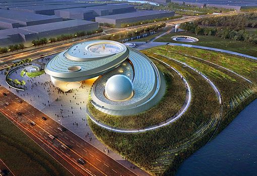 Как ожидается, в Шанхае (КНР) в 2018 году появится планетарий, выполненный в футуристическом стиле, который станет частью шанхайского музея науки и техники. Объемно пространственная композиция, предложенная архитекторами Ennead Architects, - символизирует собой вселенскую динамику. Одна из ее главных частей – это сфера (цифровой театр диаметром 21 м.) со спиралевидно расходящимися линиями, напоминающими линии движения космического тела в безвоздушном пространстве или «завитки» галактики. Объект площадью 38 000 кв.м. будет построен за 95 млн. долларов.