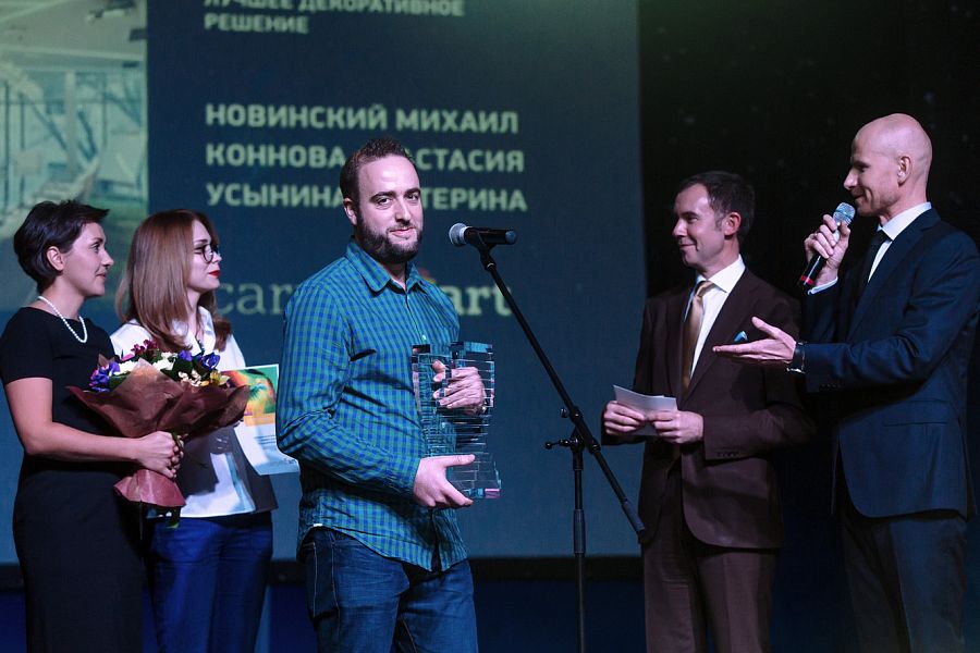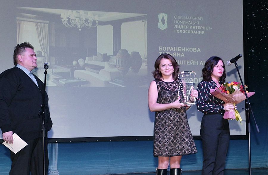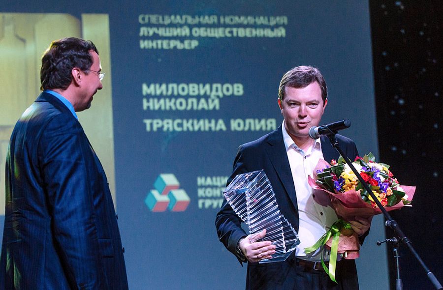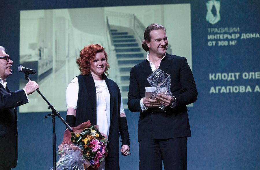 По традиции вел вечер заслуженный артист РФ Сергей Мамаев. Первая часть церемонии предполагала вручение призов в специальных номинациях. На сцену один за другим поднимались руководители и представители компаний-партнеров конкурса. Руководитель компании Happy Collections Анна Анненкова вручила приз в спецноминации «Самый современный и яркий интерьер» Анне Смирновой и Юлиану Суетину, авторам интерьера квартиры площадью 350 кв. м в Москве. Офисное пространство архитекторов Николая Миловидова и Юлии Тряскиной было отмечено как лучший общественный интерьер управляющим партнером «Национальной Контрактинговой Группы» Евгением Филимоновым. Обладателем спецприза в номинации «Цвет в интерьере: самый элегантный интерьер» от компании Manders стал архитектор Борис Дмитриев, спроектировавший интерьер квартиры площадью 120 кв. м в Москве. Авторская группа в составе Михаила Новинского, Анастасии Конновой и Екатерины Усыниной, создавшая офисное пространство в Москве, оказалась лучшей в номинации «Ковровое покрытие. Яркое декоративное решение», утвержденной компанией Carpet's ART. Больше всех голосов в интернет-голосовании на сайте Archiprofi.ru набрал проект дома площадью 1750 кв. м в Московской области Татьяны Бораненковой и Анны Беренштейн. Необходимо отметить, что в этом году за все работы на портале Archiprofi было отдано около 30 000 голосов. А значит, активность участников профессионального сообщества увеличивается.