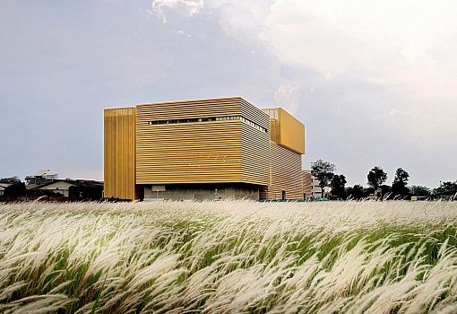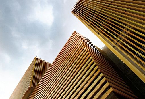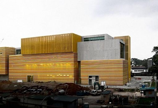 В рамках проекта Международного центра мебели в Сингапуре архитекторами DP Architects была закончена производственная и офисная часть комплекса. Восьмиэтажное сооружение состоит из череды прямоугольных бетонных объемов, часть которых огорожена экранами из горизонтальных и вертикальных полос алюминия. Преобладающий желтый – это дань уважения корпоративному цвету компании. Необычные экраны играют роль жалюзи, регулируя уровень естественного освещения.