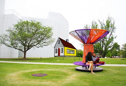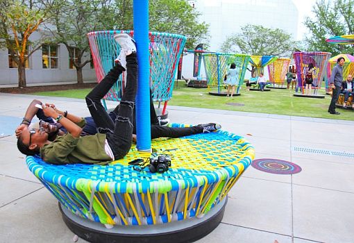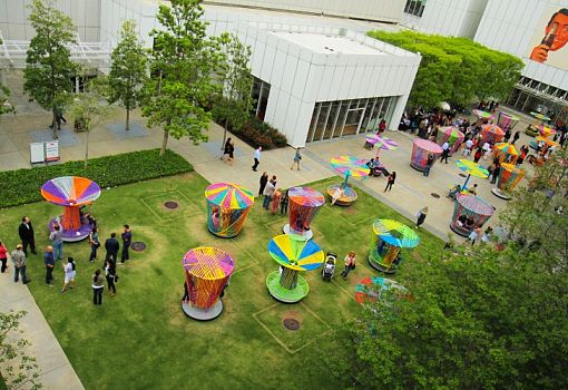 Крупномасштабную интерактивную инсталляцию создали мексиканские дизайнеры Гектор Эсраве и Игнасио Кадена на территории Художественного музея в Атланте (США). Проект Los Trompos («Волчки») стал вторым в серии интерактивных инсталляций, призванных интегрировать в архитектурную среду общественные пространства. В общем виде «Волчки» – это 30 разноцветных объемов из ткани, сотканной в традиционном мексиканском стиле.