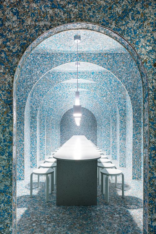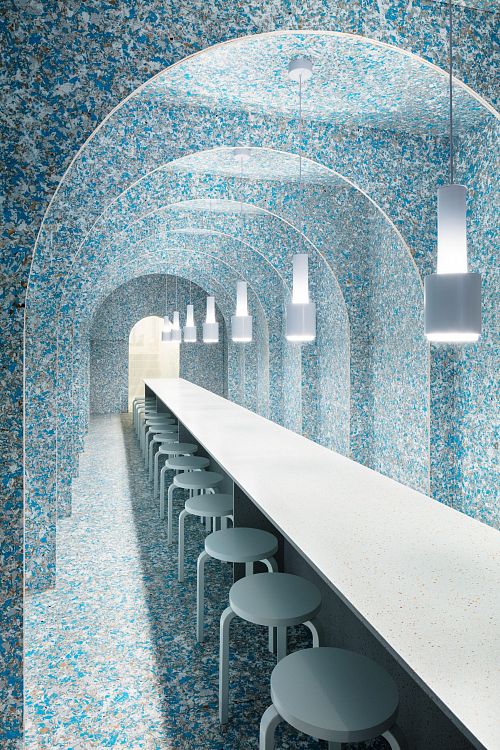 Концепт под названием Zero Waste Bistro разработан Институтом финской культуры в Нью-Йорке. Проектную группу возглавили финские дизайнеры Харри Коскинен и Линда Бергрот. «Есть два пути решить проблему мусора, сообщили авторы. – Первый и самый главный – создавать биоразлагаемую упаковку. Но параллельно с этим существует параллельный путь – избавляться от существующей упаковки, превращая ее в новые функциональные предметы и пространства». Известно, что абсолютно все объекты внутри бистро изготовлены из специальных панелей на основе переработанных упаковок из-под молока Tetra Pak.