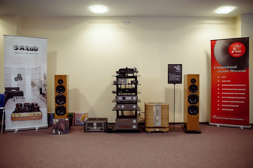 В экспозиции Нота Плюс/S.A. Lab демонстрировался широкий спектр электронных компонентов мирового уровня от российского бренда S.A. Lab, который представил глава компании Алексей Сёмин. Глубокому дизайнерскому и конструктивному обновлению подверглась популярная среди любителей высококачественного звучания линейка ламповых компонентов S.A. Lab Lilt. Общие для моделей серии Lilt инженерные принципы — схема полное двойное моно; применение трансформаторов, спроектированных и изготовленных вручную на основе высококачественного железа из Южной Кореи, специально для соответствующих проектов; присутствие в схемах электронных деталей, отобранных по высочайшим критериям качества и надежности. Проигрыватель грампластинок Michell Engineering Orbe SE хорошо известен аудиофилам, поэтому не нуждается в отдельном представлении, как, впрочем, и акустические системы ProAc, которые отвечали непосредственно за воспроизведение звука.