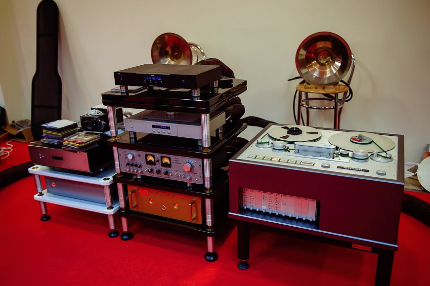 Компания CTC Capital продемонстрировала на своем стенде классический стиль и точность звука акустических систем Rosso Fiorentino Elba. В качестве основного материала кабинета АС инженеры выбрали древесноволокнистые плиты высокой плотности (HDF). Конструкция кабинета выполнена по традиционному многослойному принципу. HDF панели объединены в своеобразный “сэндвич” с резиной и пластинами из алюминиевого сплава. Завершает отделку кожа чистого белого или черного цвета. Rosso Fiorentino Elba выполнена по 2,5 полосной акустической схеме с двумя размещенными сзади фазоинверторными портами. Чтобы добиться максимально точного и естественного звучания, в акустической системе установлены фирменные драйверы разработанные инженерами Rosso Fiorentino в сотрудничестве с Danish Scan Speak. Помимо благородной итальянской акустики, инсталляция CTC-Capital включала электронные компоненты именитого британского бренда Musical Fidelity. Наибольший интерес публики вызвал оригинальный интегральный усилитель Musical Fidelity Nu-Vista 800.