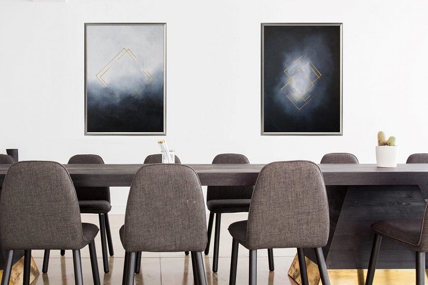 Для просторного помещения с высокими потолками и большими окнами лучше выбрать габаритное полотно. Для небольших помещений подойдет средних размеров горизонтальное изображение или несколько небольших работ.Традиционные цветовые пропорции гармоничного интерьера 60/30/10.