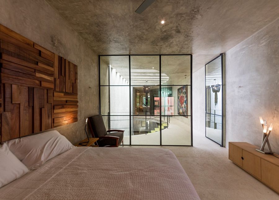 Основным материалом проекта стал полированный бетон. В качестве контрастного материала было выбрано полированное стекло. Из него сделаны перегородки приватным помещений. Таким образом архитекторы достигли двух целей. Во-первых, обеспечили неприкосновенность частной жизни в довольно открытом доме. Во-вторых, обеспечили «солнечный» декор интерьера, наполненного причудливыми отражениями и мерцающими бликами. Не случайно мексиканский проект называется «Калейдоскоп».
