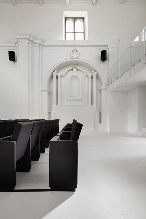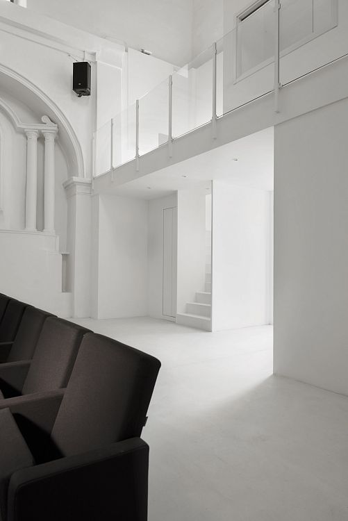 Архитекторы интегрировали в пространство с историей новую подсветку на основе светодиодов и спроектировали экономичную систему отопления. Изящным финальным штрихом проекта стала винтовая лестница, ведущая на антресоль, где установлены два дополнительных ряда кресел.