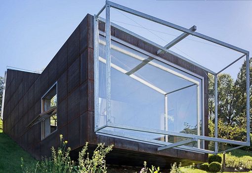 Именно этот старинный оптический прибор вдохновил бюро Christian Tonko на создание небольшой художественной студии в Брегенце (Австрия). Дело в том, что два торцевых фасада постройки остеклены. Размер того, что расположен ниже по склону, значительно больше; он напоминает гигантский пейзаж в раме. Тот, что выше по склону, является своеобразным смотровым окном «камеры-люциды» - таким образом, сходство довершается.