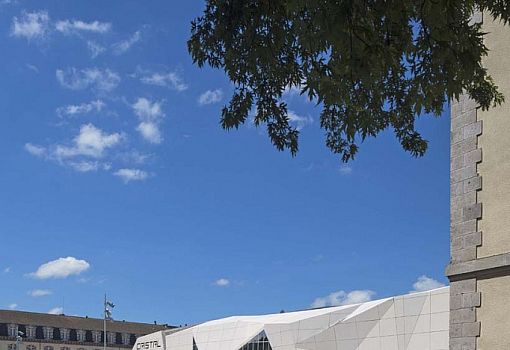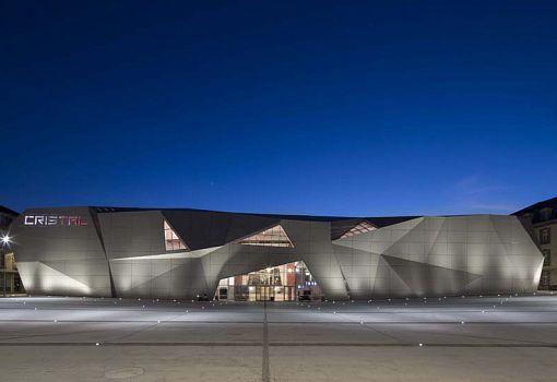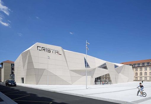 Архитектурное бюро linéaire A завершило реконструкцию площади во французском городе Орийаке, построив кинотеатр Cristal рядом с тремя историческими зданиями. Его нестандартный дизайн определяет и саму форму площади, предлагая гибкое новое общественное пространство для проведения культурных мероприятий, таких как Международный фестиваль уличных театров в Орийаке. Скульптурное содержание проекта предполагает движение, присущее киноленте; объем задумывался как кристалл, «выращенный» из площади.