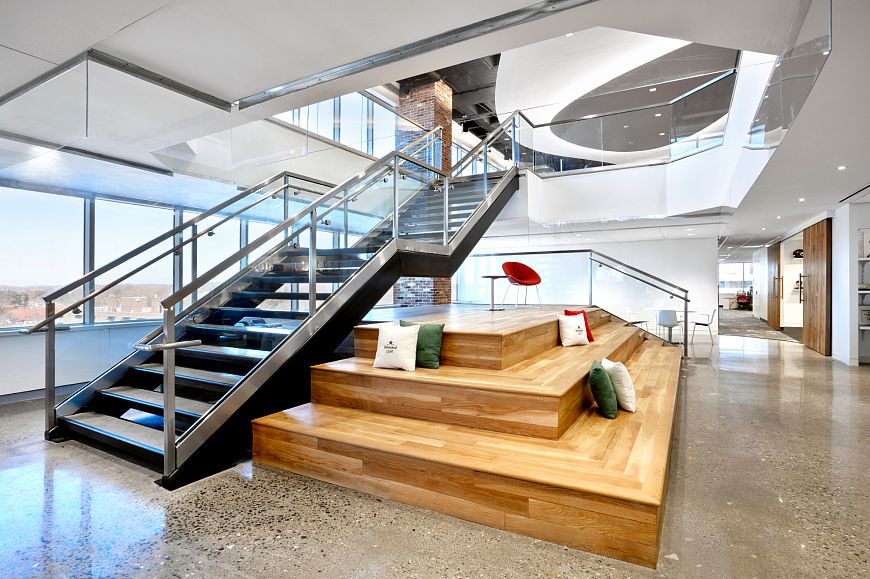 Недавно завершилось обустройство штаб-квартиры крупной транснациональной компании в Уайт-Плейнс (США), осуществленное по проекту бюро Spector Group. По словам руководителя бюро Скотта Спектора, архитекторы стремились создать открытую, удобную для взаимодействия среду.