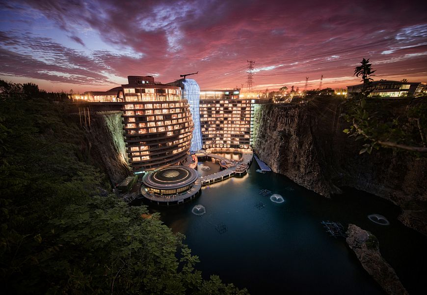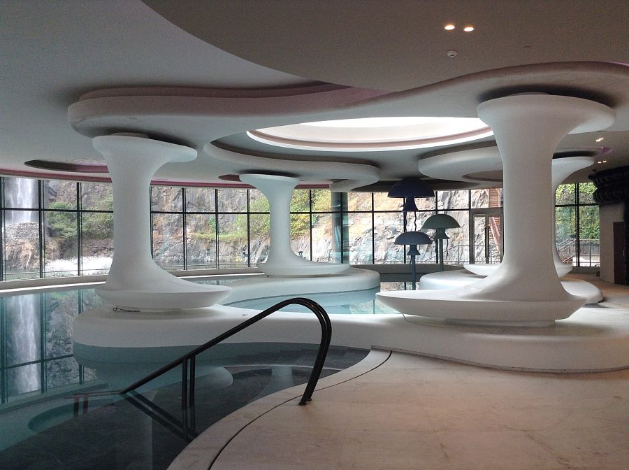 Два верхних его этажа возвышаются над поверхностью земли. На них запроектирован блок рецепции, ресторан и конференц-холл. Плавательный бассейн и другие общественные пространства находятся на одном уровне с гладью искусственного водоема (это шахта, затопленная водой). Два нижних этажа упрятаны под воду. Здесь расположен еще один ресторан, а также специальные номера-«аквариумы» с панорамными окнами, из которых можно наблюдать за подводной жизнью.