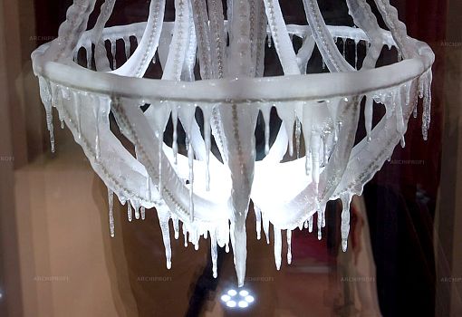 Ледяная люстра Polar Light – дипломная работа Артуро Эрбсмана (Arturo Erbsman), выпускника прошлого года парижской школы Ecole Nationale Supérieure des Arts Décoratifs (ENSAD). В обычной ситуации холод и плохая погода являются разрушителями материалов и конструкций, но молодой дизайнер сделал мороз своим союзником и даже более того – соавтором. Основа светильника выполнена из гибкого металла, обернутого мягким белым сетчатым материалом, главное назначение которого – удерживать воду в разных ее формах (снег, дождь, утренняя роса). В итоге, в зависимости от климатической картины дня, каркас постепенно оказывается покрытым слоем пушистого снега или льда, сверкающего под лучами солнца либо ночных источников света.