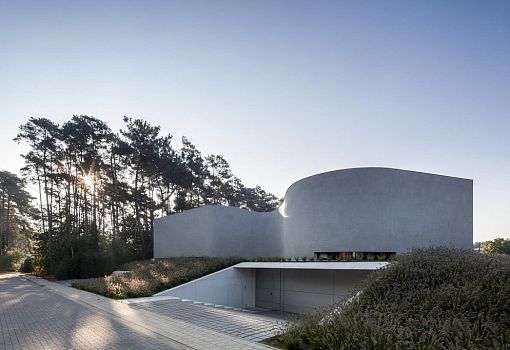 Вилла MQ в Бельгии демонстрирует контраст в архитектуре. Фасад, выходящий на улицу, выполнен в виде глухой волнообразной стены, бережно сохраняющей в неприкосновенности privacy владельцев. Практически все остекленные проёмы обращены во внутренний двор. Пластически выразительная бетонная конструкция разработана архитекторами Office O architects. Вилла акцентирует на себе внимание на фоне окружающего зеленого массива.