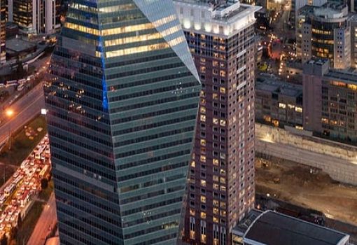 Офис крупнейшего банка Стамбула (Турция) выполнен в виде 35-этажного многогранного кристалла. Комплекс KristalKule состоит из двух зданий: 12-этажного бизнес-центра и собственно башни. Творение бюро PeiCobbFreed & PartnersArchitectsLLP навсегда изменило городскую панораму Стамбула в этой части города.