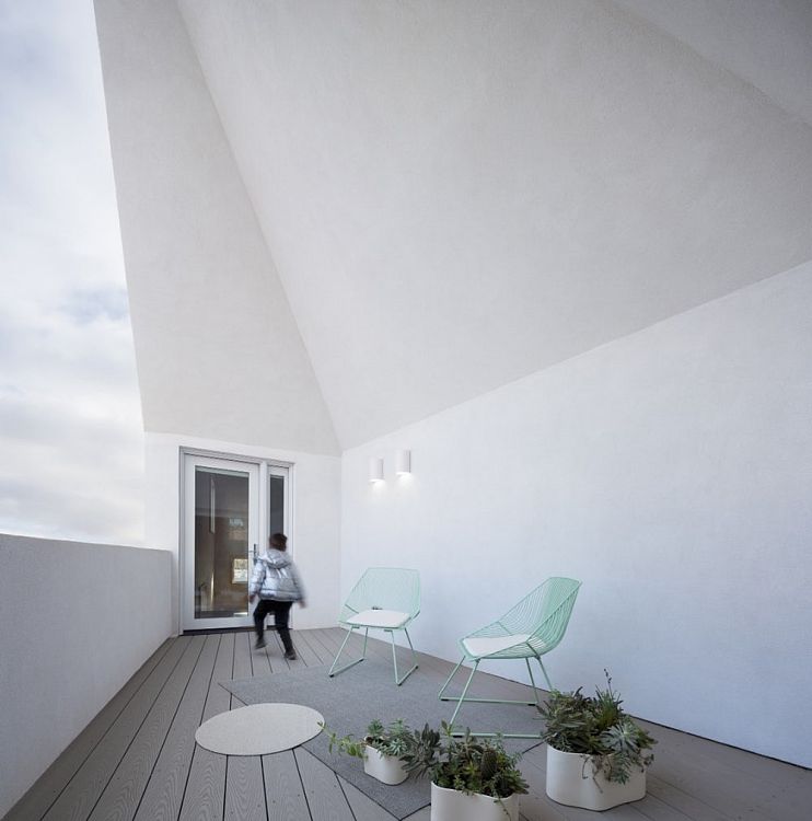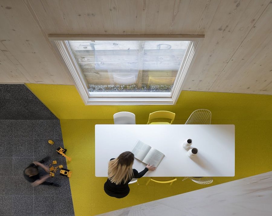 Ширина здания, на постройку которого хватило 87 многослойных клееных панелей CLT, составляет всего 5,5 м. Его отличительная особенность — кровля с шестью скатами и изломами. По признанию автора, была проведена большая работа по изучению конструкции кровель на американском Юге. И даже планировка в этом проекте стала «заложницей» крыши. Еще одна деталь: благодаря использованию CLT здание удалось возвести на месте за 14 дней.