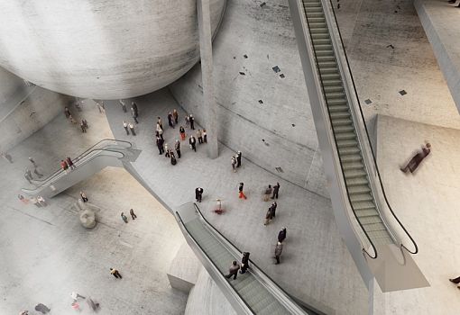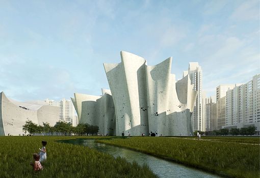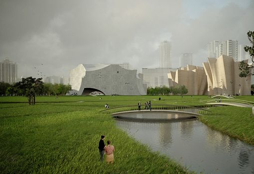 На Белградской неделе дизайна швейцарский архитектор Кристиан Керес представил свой новый проект — генплан современного культурного района в китайском Гуанчжоу. Главная идея — сохранить природный ландшафт, сформировав на южной окраине города пространство для отдыха вдали от суеты и хаоса мегаполиса. На 55 га лесных участков вдоль берегов извилистой реки Чжузян раскинется холмистый парк. Здесь же будут возведены три культурных центра: городской музей, художественная галерея и музей науки. Здания вырастают из ландшафта как горы, напоминая органические скульптурные формы. Особенно интересен дизайн художественного музея: пористый известняк в качестве строительного материала, огромный купол крыши и круглый люк в потолке.