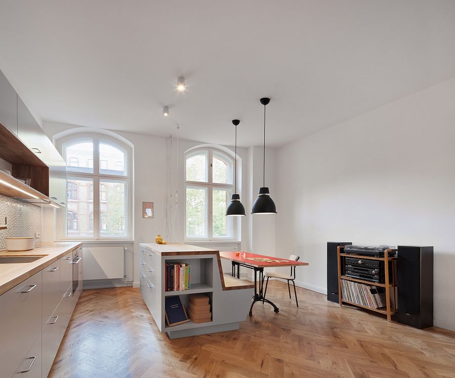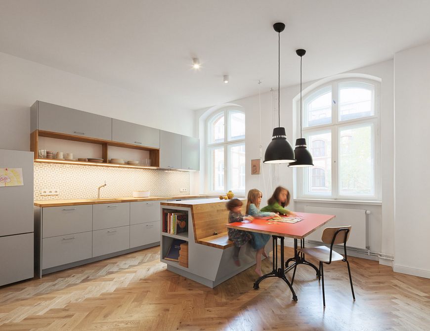 Дизайнеры немецкой студии Club Marginal Architekten осуществили реновацию апартаментов XIXвека в Берлине для семьи с двумя детьми.