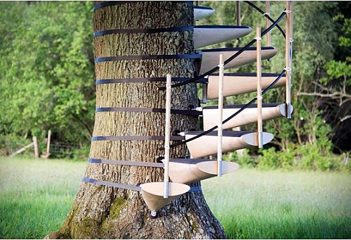 Модульная система Canopystair, позволяющая создать лестницу для того, чтобы вскарабкаться на дерево, была создана дизайнерами Робертом Макинтайром и Тором Кульве. Специальные стяжки позволяют закрепить ступени из березовой фанеры на стволе совершенно «безболезненно» для дерева. Нет нужды ни в сверлении, ни в гвоздях…