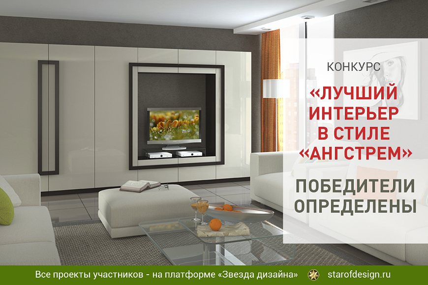 На конкурсной платформе «Звезда Дизайна» завершился дизайнерский конкурс «Лучший интерьер в стиле ««Ангстрем», организованный российским мебельным холдингом «Ангстрем» и агентством PR и маркетинговых коммуникаций ADVANZ. Всего в адрес жюри было прислано свыше 90 работ от 62 авторов. Итак, настало время подвести итоги.