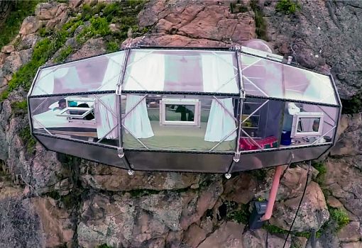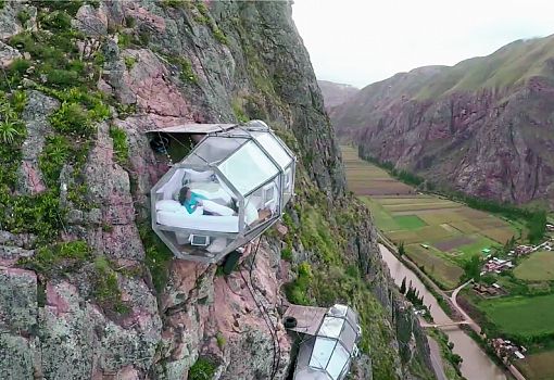 Номера класса люкс – это не обязательно обилие дорогой мебели и современной электроники. Выяснилось, что полноценные жилища могут быть расположены где угодно, в том числе и над… бездной. Капсулы проекта Skylodge Adventure Suites подвешены к вертикальному склону в Священной долине в Перу на высоте 122 метра. Многогранные объемы из алюминия и поликарбоната имеют длину 7,32 м, высоту и ширину 2,44 м. Одна подобная конструкция предоставляет все необходимые удобства для компании из 8 человек.