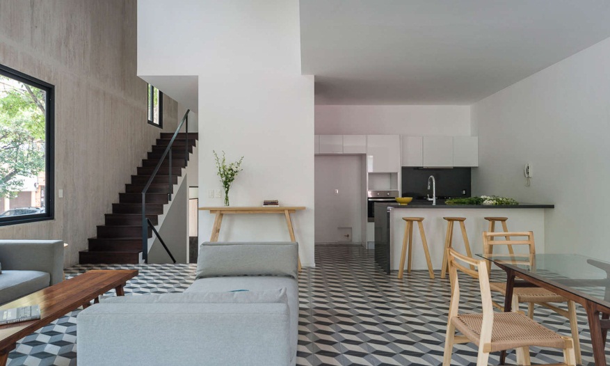 К примеру, уровень нижнего этажа поднят для того, чтобы сберечь особенности частной жизни обитателей дома: именно так строили в Мехико в начале XX века. Еще проектом не предусмотрен внутренний двор – двери подъездов и окна выходят прямо на улицу. Проект бюро JSa - Durango 133 признан одним из самых успешных в сфере жилого строительства Мексики, о нем говорят как о явлении культуры.