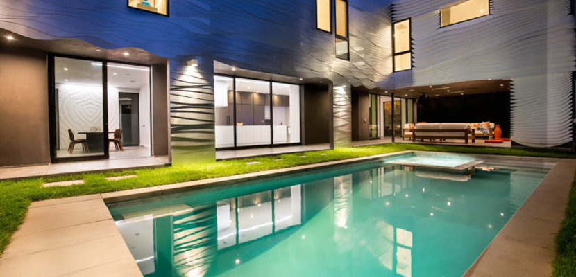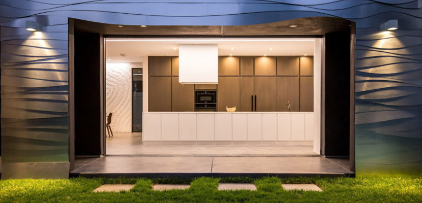 Проект оригинального дома вдохновлен морем, его волнами и изменчивостью. Пространство, архитектура строения, - все навеяно морской стихией. Внутри мы находим современные и достаточно простые пространства, не отвлекающие от архитектуры. Волны здесь повсюду. В ходу асимметричные рисунки, однако, они очень гармоничны. Прямые линии контрастируют с извилистыми кривыми. Внутри строения использован минималистский стиль, разбавленный оригинальными яркими акцентами. Большие окна кухни «раскрываются» на бассейн. В столовой внимание привлекает деревянный стол в винтажном стиле. В спальне спокойную гладь бело-голубых морских оттенков «ломает» ярко-красный стул, который, несомненно, должен ассоциироваться с кораллами.