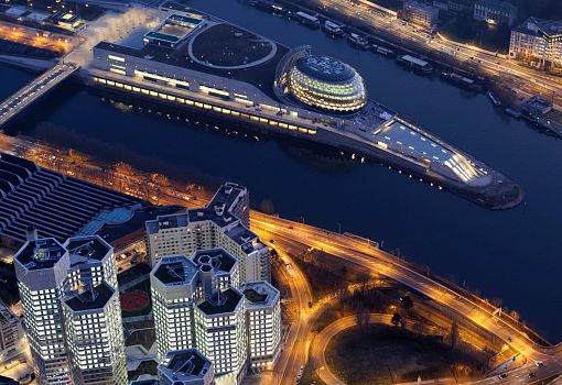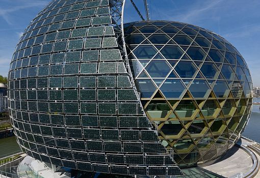 В Париже состоялось официальное открытие концертного комплекса La Seine Musicale площадью более 36 000 кв.м, построенного по проекту Сигэру Бана и Жана де Гастина. Здание находится на острове Сеген посреди Сены. Стоимость работ оценивают в 189 млн.долларов США. В основу композиционного решения лег образ океанского лайнера. Главный концертный зал на 1150 мест находится внутри округлого объема, венчающего здание. Каркас его собран из гнутых деревянных конструкций, оболочка стеклянная. Любопытная деталь – так называемый солнечный парус. Это покрытая фотогальваническими батареями мобильная консоль, способная поворачиваться вслед за солнцем.