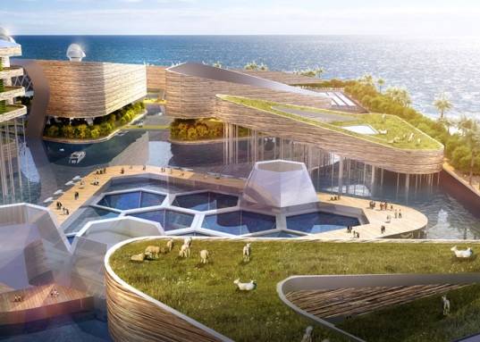 Утопические идеи о плавучих городах могут претвориться в жизнь. Китай, как одна из самых густонаселенных стран мира, всерьез рассматривает возможность создания плавающего города. Доказательством этого является проект AT Design Office, который представляет собой систему шестиугольных надводных модулей, способную полностью обеспечивать будущих обитателей всеми необходимыми ресурсами, включая пищу (рыбные фермы и инкубаторы).