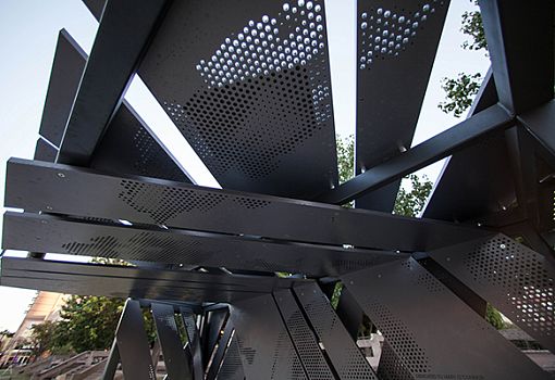 Новый проект бюро Asteriskos доказал, что даже обычная остановка автобуса может иметь серьезный социальный подтекст. Так, Memorial Transit Shelter стала еще и мемориалом Мери О'Коннор (скандальная певица и композитор). В целом композиция представляет собой хаотично пересекающиеся перфорированные экраны, обернутые вокруг металлического каркаса. В сооружении прослеживаются как минималистские, так и индустриальные мотивы. Лицо певицы изображено при помощи перфорации. Расположена остановка в городе Темпе (Аризона, США).