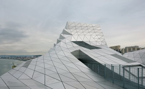 В Лионе (Франция) реализован один из наиболее значимых деконструктивистских проектов бюро COOP HIMMELB(L)AU - Musée des Confluences. По форме объект напоминает футуристический межпланетный корабль, приземлившийся на окраине города. Здание музея поделено на две части: полностью остекленный «кристалл» и белоснежное непрозрачное «облако». Аморфное «облако» представляет собой сочетание многогранных, сложных геометрических объемов и консольных выносов на многочисленных опорах. «Кристалл» визуально проще и тверже, он характеризуется наличием воронки, с помощью которой осуществляется взаимосвязь архитектуры с интерьером. Завораживающее сооружение занимает около 21000 кв.м., причем «кристаллическая» часть предназначена для проведения больших мероприятий.