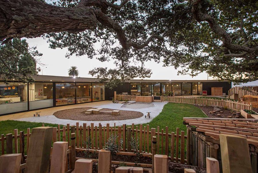 Уникальный инновационный центр по уходу за детьми удалось создать бюро Collingridge и Smith Architects (UK) Ltd в Окленде (Новая Зеландия). Проект этого детского сада объединяет духовные и культурные ценности Новой Зеландии. А «завертелось» все вокруг двух великолепных деревьев, охраняемых государством, и долгое время мешавших потенциальным застройщикам.