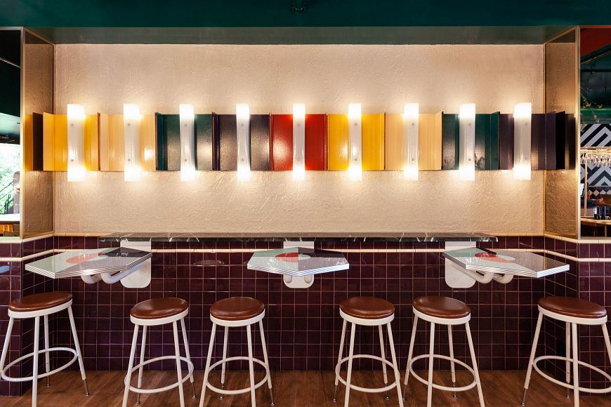 «Заказчик поставил перед нами задачу спроектировать кричащий, наполненный цветом и различными текстурами интерьер, который сломал бы стереотип традиционного винного бара», — рассказывает один из авторов проекта Дэвид Дворкинд.