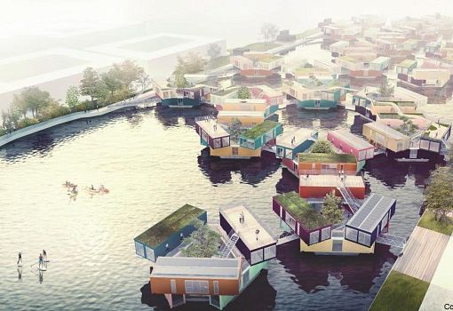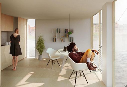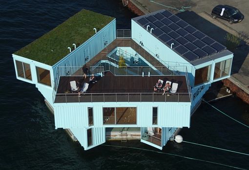 Первая партия новых недорогих плавучих студенческих общежитий создана в Копенгагене (Дания). Студенту с небольшим доходом найти жилье в переполненном городе довольно сложно. В Дании подсчитали, что требуется не менее 40 000 новых мест в таких общежитиях. Проект Urban Riggers, 10% акций которого владеет бюро Бьярке Ингельса BIG, предлагает нетрадиционное архитектурное решение, которое способно частично решить данную проблему. Архитекторы хотят создавать плавучие общежития из старых морских транспортных контейнеров. Форма общежития напоминает шестиконечную звезду с гранями - контейнерами, так как состоит из двух треугольников, поставленных друг на друга. Таким образом, одно общежитие составлено из шести контейнеров, в каждом из которых имеется кухня, ванная и спальня. Внизу, в получившемся атриуме, находится внутренний дворик, имеется также небольшой причал, платформа для ныряния в воду, зона барбекю и терраса на крыше. Каждый корпус вмещает до 12 человек.