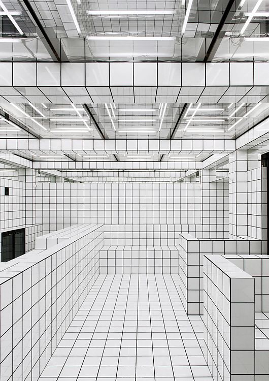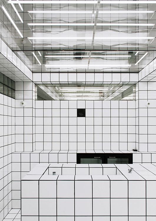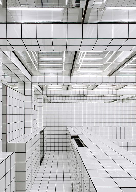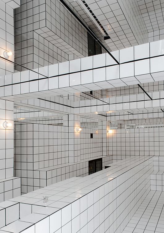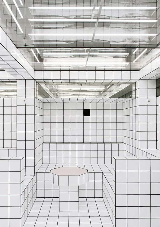 «Как реплика знаменитого бара Лооса, наше заведение представляет своего рода универсальную общественную скульптуру, внутри которой гости чувствуют себя участниками социального действа. Архитектура упрощена до предела, ведь фактически это отделанная белой плиткой комната, которая может быть построена в любой точке земного шара», — говорят авторы проекта.