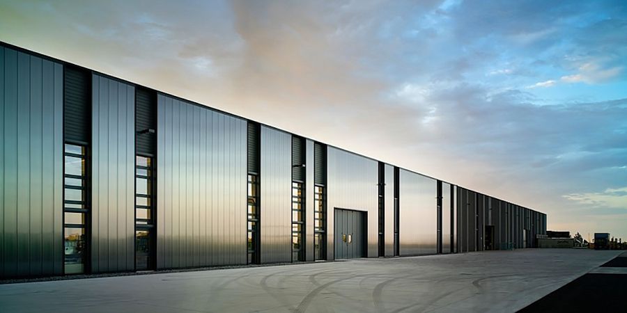 По словам авторов проекта, здание участвует в диалоге между землей и небом, светом и тенью. Фасады его частично светопроницаемы, поскольку сделаны из поликарбоната. Толщина каждой фасадной панели составляет 4 см, а высота – 10 м. Элементы навесного фасада крепятся на металлическую подсистему. Облицовочная панель склеена из двух пластин: задняя часть непрозрачная, а передняя обработана до зеркального блеска. В результате издалека кажется, что отражающая окружающую природу постройка буквально светится изнутри. «Вариативность – ключевое понятие в этом проекте, - утверждают архитекторы. – В зависимости от времени суток и интенсивности естественного света цвет фасадов меняется от черного к золотистому, а от золотистого – к металлическому. В целом здание демонстрирует очевидный факт: хорошая промышленная архитектура способна не только облагородить ландшафт и природное окружение, но и повысить качество офисного интерьера».