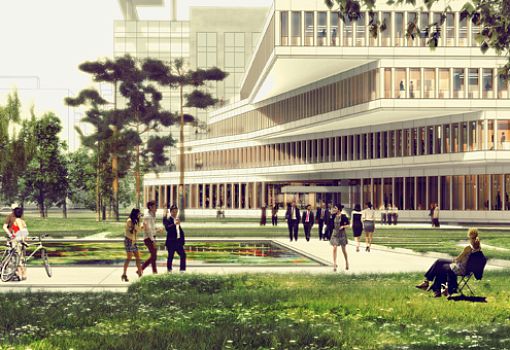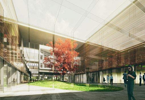 Здание построят на территории, которая является, по сути, общественным парком: это место отдыха с множеством высоких деревьев. Архитекторы планируют сохранить этот парк, как атмосферу, намеренно закладывая минимальную высоту здания. Квадрат крыши соответствует оригинальному мастер-плану, в то время как плоскостные сдвиги этажных платформ постепенно превращают здание в ступенчатую призму.